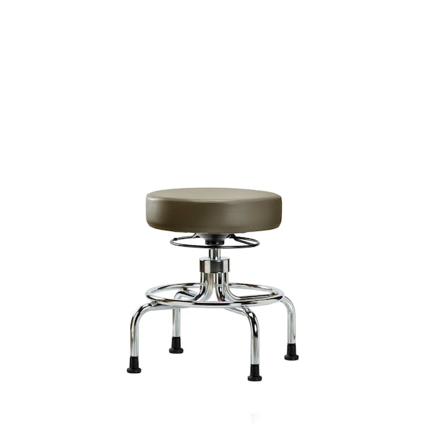Vinyl Medium Bench Height Screw-Lift Stool is adjustable from 20.5-28 inches from the top of the seat to the floor and features a manual classic screw-lift height adjustment and chrome 4-legged base with fixed foot ring and stationary, non-marring glides suitable for hard floors in antibacterial/antifungal Taupe Supernova Vinyl.
