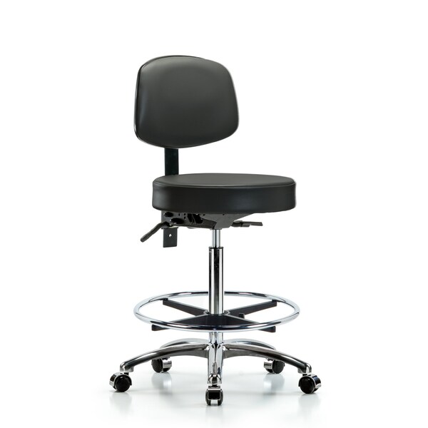 Vinyl Stool, Back, Chrome, High Bench, Foot Ring, Casters, Carbon