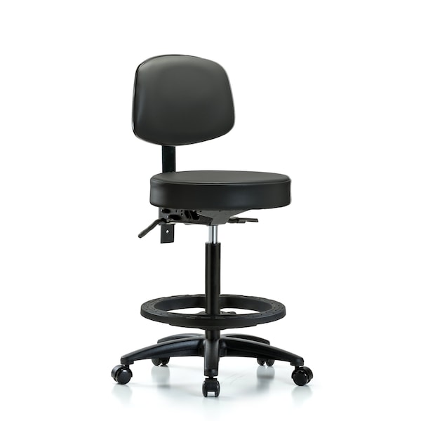Vinyl Stool, Back, High Bench, Foot Ring, Casters, Carbon