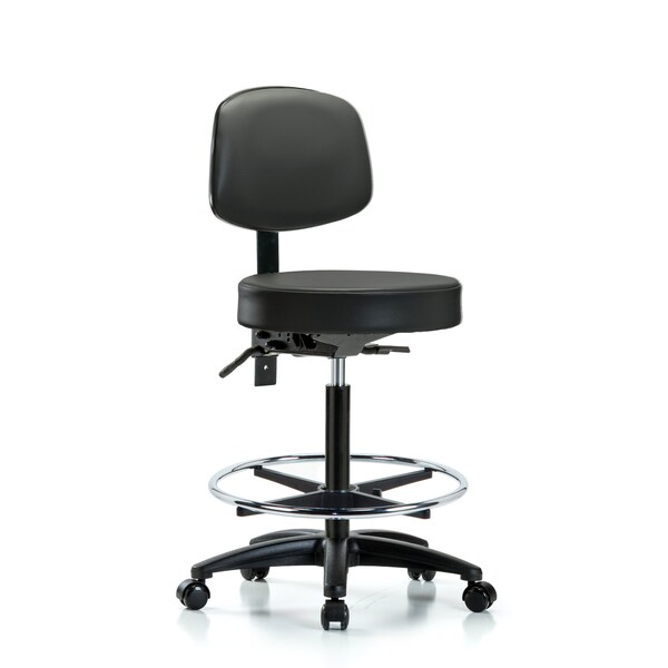 Vinyl Stool, Back, High Bench, Foot Ring, Casters, Carbon