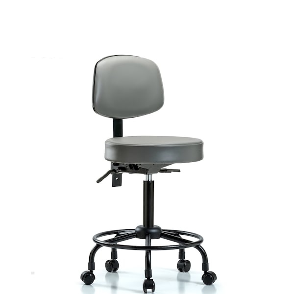 Vinyl Stool, Back, Med Bench, Round Tube Base, Casters, Sterling