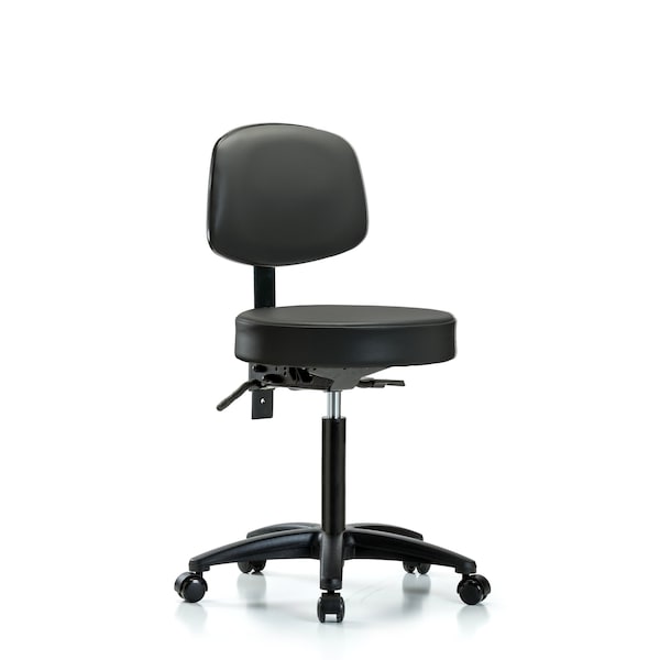 Vinyl Stool, Back, Med Bench, Tilt, Casters, Carbon
