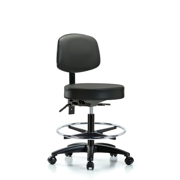 Vinyl Stool, Back, Med Bench, Tilt, Foot Ring, Casters, Carbon