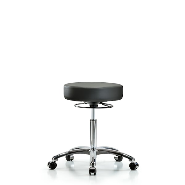 Vinyl Stool, Chrome, Med Bench, Casters, Carbon