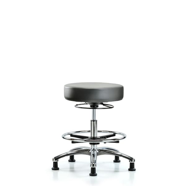 Vinyl Stool, Chrome, Med Bench, Foot Ring, Glides, Sterling