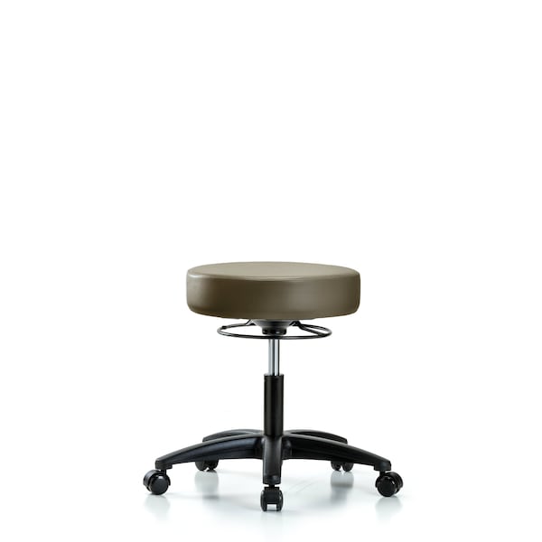 Vinyl Desk Height Stool is adjustable from 17.25-22.5 inches from the top of the seat to the floor and features ergonomic adjustments, including 360-degree, all-around control and black, nylon-reinforced fiberglass base with dual-wheel, self-braking, non-marring casters suitable for hard floors in antibacterial/antifungal Taupe Supernova Vinyl.
