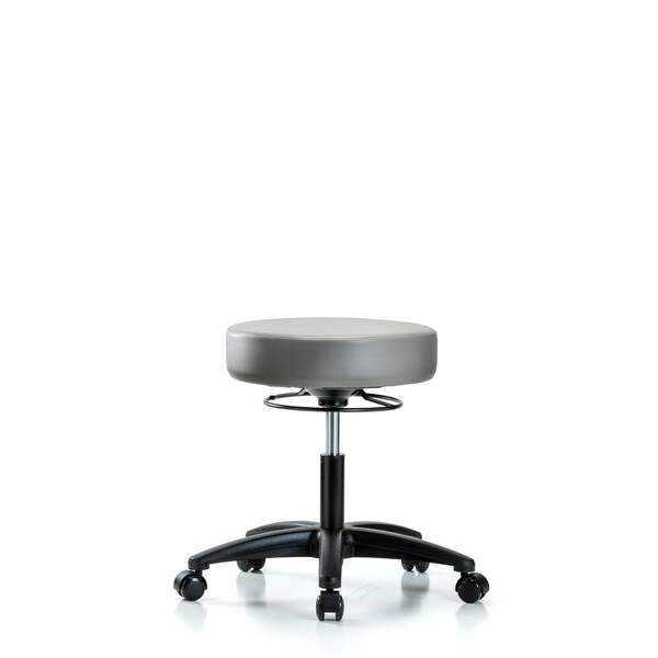 Vinyl Desk Height Stool is adjustable from 17.25-22.5 inches from the top of the seat to the floor and features ergonomic adjustments, including 360-degree, all-around control and black, nylon-reinforced fiberglass base with dual-wheel, self-braking, non-marring casters suitable for hard floors in antibacterial/antifungal Sterling Supernova Vinyl.