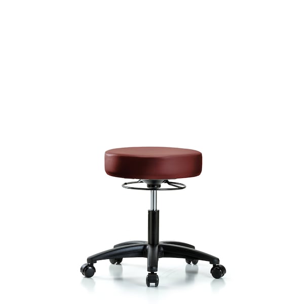 Vinyl Desk Height Stool is adjustable from 17.25-22.5 inches from the top of the seat to the floor and features ergonomic adjustments, including 360-degree, all-around control and black, nylon-reinforced fiberglass base with dual-wheel, self-braking, non-marring casters suitable for hard floors in antibacterial/antifungal Borscht Supernova Vinyl.