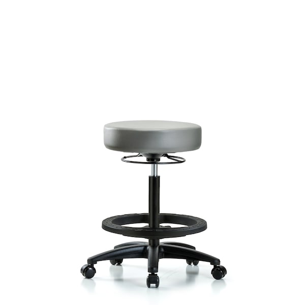Vinyl Stool, High Bench, Foot Ring, Casters, Sterling