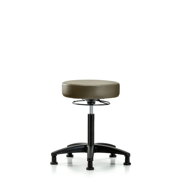 Vinyl Medium Bench Height Stool is adjustable from 19.75-27.25 inches from the top of the seat to the floor and features ergonomic adjustments, including 360-degree, all-around control and black, nylon-reinforced fiberglass base with stationary, non-marring glides suitable for hard floors in antibacterial/antifungal Taupe Supernova Vinyl.
