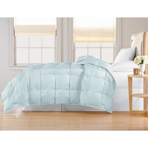 Microfiber White Goose Down Comforter, Light Blue, King