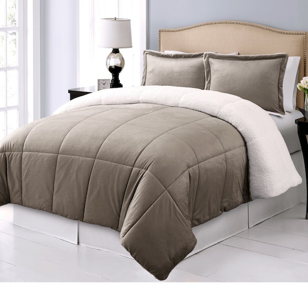 Warm Sherpa Down Alternative Comforter Set, 3pc, Grey, King