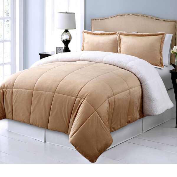 Warm Sherpa Down Alternative Comforter Set, 3pc, Khaki, King