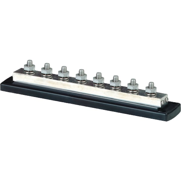 Features tin-plated copper bus with stainless steel hardware. The highest amperage busbar available. Ideal for main DC negative or positive bus on larger boats.