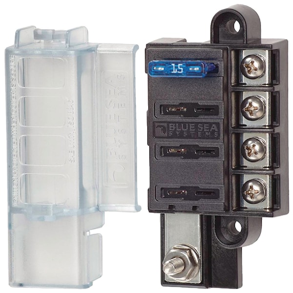 Provides surface mount circuit protection for ATO/ATC Fuses in a compact footprint. The single side design allows wire entry from one side to maximize space. Compact common source fuse block; Accepts ATO and ATC fast acting blade fuses; Single side entry wiring; Ignition Protected - for use in a gasoline engine compartment; Insulating cover meets ABYC/USCG insulation requirements; Tin-plated copper buses and fuse clips; Accepts ring or snap fork type terminals; Small format standard and custom labels available; Fuses sold separately. Specifications: Voltage Max. Operating: 32V DC; Amperage Max. Operating: 30A per circuit; Amperage Max. Operating: 100A per block; Fuse Type: ATO or ATC Fuses; Screw Terminal: #8-32 Screws with captive star lock washer; Mounting: #8 Screw (M4)