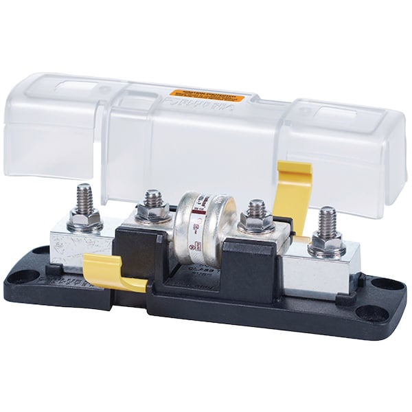 Allows the use of Class T fuses for fast acting circuit protection of inverters and other electronics.Four stud design provides ample access around connecting stud to install large cable lugs without obstruction from the fuse; Insulating cover satisfies ABYC/USCG insulation requirements; Cover breakouts allow wire access in any direction; Stud design ensures secure fuse mounting even with high heat; Stainless steel studs provide resistance to corrosion and high torque; One-piece stainless flange nuts ensure safe and secure connections; UL 94-V0 base resists high heat
