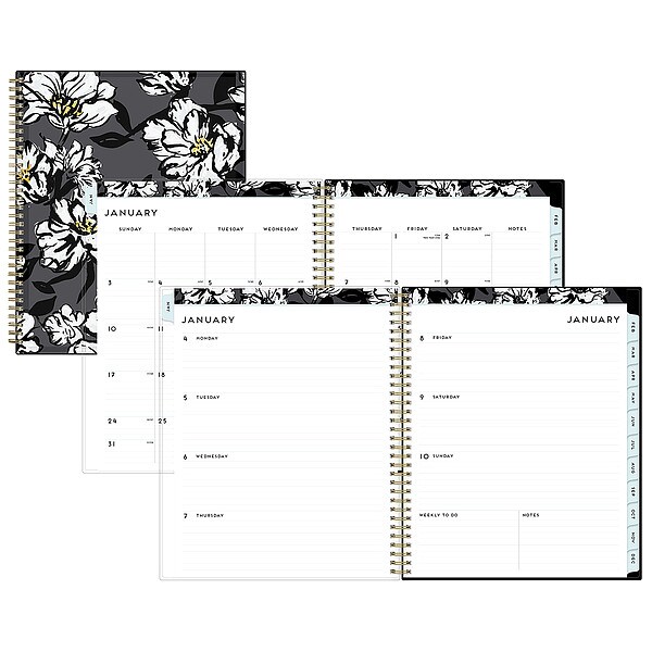 Planner, Format Weekly, Monthly, Sheet Size 8-1/2 x 11 in, Paper Color White/Black, Cover Color Gray/Black/Gold, Cover Material Laminated Paperboard; Plastic, Refillable No, Recycled Content 0 Percent, Features Julian Dates