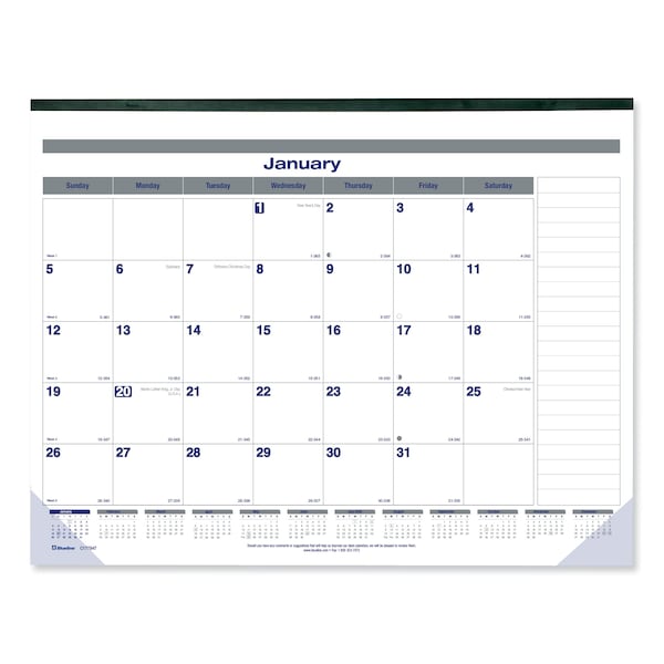 Blueline® Net Zero Carbon Monthly Desk Pad Calendar, 22 x 17, Black Band and Corners, 2020