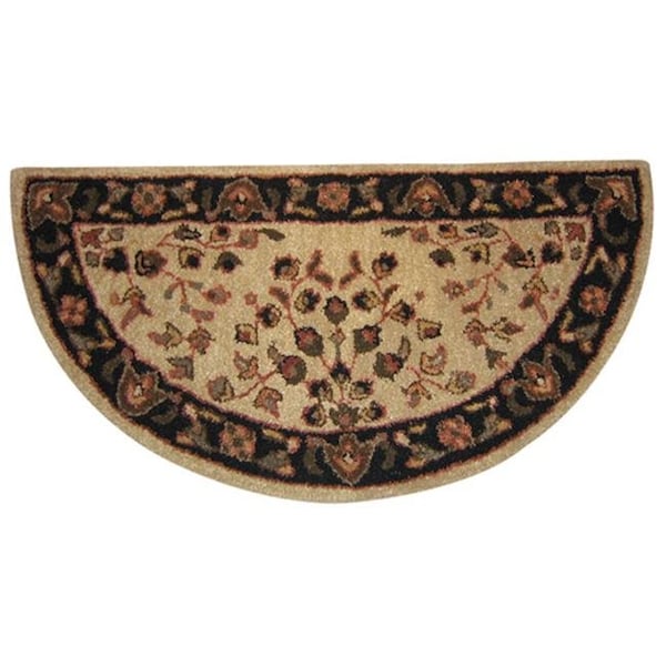 Beige With Black Hand-Tufted 100% Wool Hearth Rug