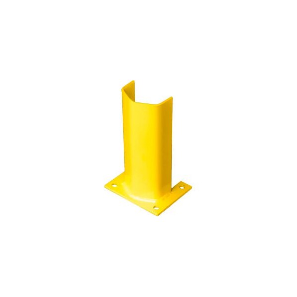 Steel post protectors 12"h post protector 3/8" thick these post protectors serve as a pallet rack guard to improve plant safety and efficiency. The guards provide pallet rack protection and reduce building repairs due to accidental impact and collisions. Guards are made using heavy gauge steel with a durable powder coat finish. Units fit around rack posts up to 4"w. Includes four pre-drilled 9/16" mount holes that allow floor anchoring for installation (hardware not included). Base plates measure 7-1/2"l x 6"w.