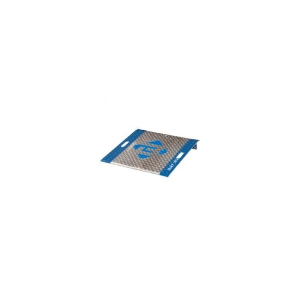 Bluff gas cylinder pallet ramp plate easily move industrial, medical and specialty gas cylinders on and off pallets. steel pallets are used in the gas cylinder distribution process to hold both filled and depleted cylinders. This unique plate provides an excellent transition surface for maneuvering cylinders with ease and control, significantly reducing cylinder damage and the risk of employee injury. 3/8" thick aluminum diamond plate construction is strong enough to accommodate heavy cylinders, yet lightweight for easy hand placement and portability. Ansi code and weight capacity is stamped onto the back of each plate. Note: not for use with powered vehicles. standard pallet plate is engineered for a 3" pallet height. Plate features hand-hole cutouts for easy lifting, a full-length welded safety leg and a 2" entry lip for a smooth transition.