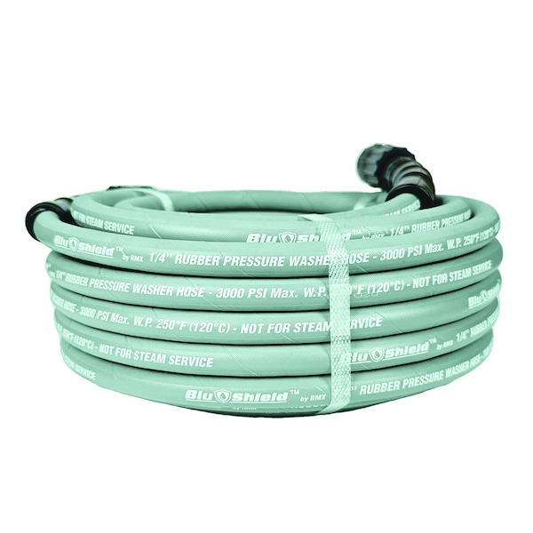 Blushield Rubber Pressure Washer Hose Assembly 1/4" x 50' w/ M22 Non Marking