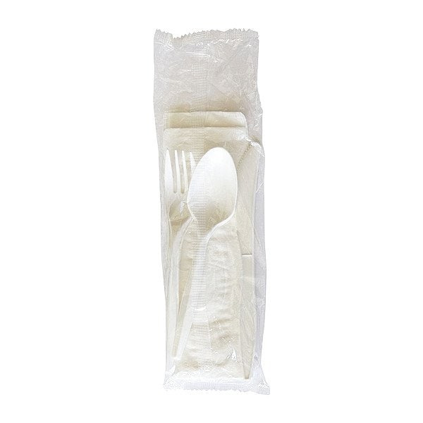 Disposable Cutlery Sets, Bio-Based No, BPI Certified No, Color White, Compostable Not Compostable, Material Plastic, Product Series Not Applicable, Product Type Cutlery Sets, Recyclable No, Specific Material Polypropylene, Standards Not Applicable, USDA Certified Bio-based Products No, Weight Medium-Weight, Wrapped or Unwrapped Wrapped, Pack Count 250, Packs per Case 0, Set Contents Fork, Knife, Napkin, Spoon, Package Quantity 250