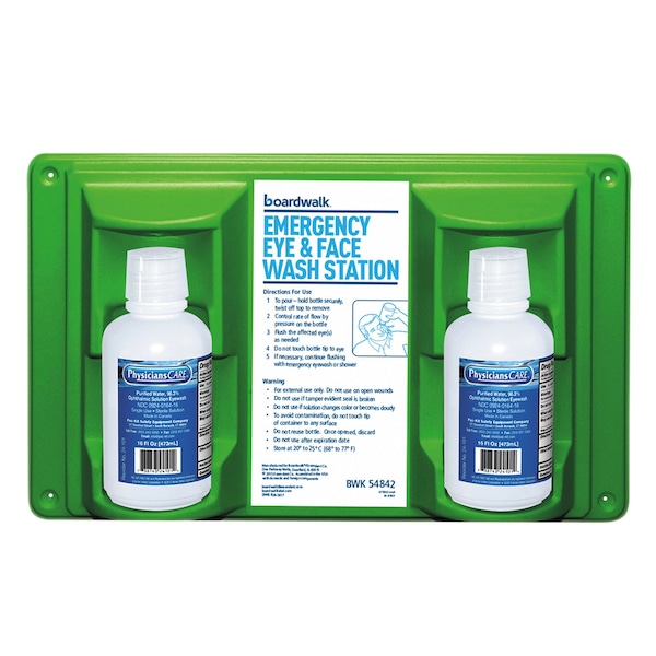 Boardwalk® Emergency Eyewash Station, 16 oz Bottle, 2 Bottles/Station