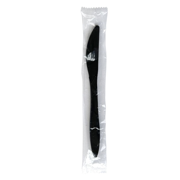 Mediumweight Wrapped Polypropylene Cutlery, Knife, Black, 1000PK