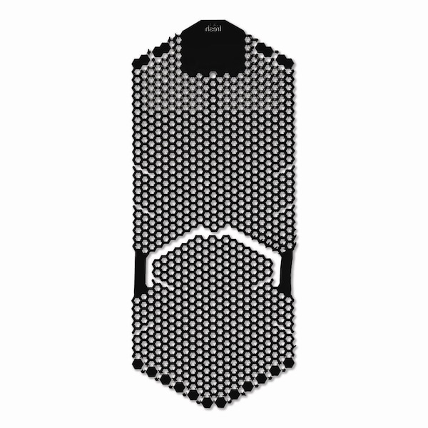 The vertical 60-day urinal screen contains three times more fragrance than competitors. The patented two-sided design eliminates 99% of urine splash on both sides for error-free installation. The Vertical screen doesn't require mounting, simply place the base over the drain and lean the body up the back of the urinal and you're done. No suction cups to engage so it's faster and there's less waste. Each screen has date tabs for replacement reminders and contains beneficial bacteria that consume odors and keep drains clean, clear and smelling fresh.
