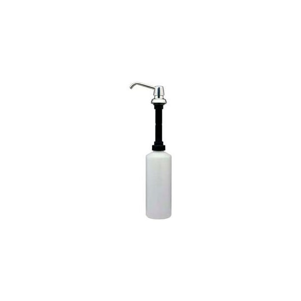 Bobrick liquid & lotion soap dispenser 34-oz. Capacity with 4 spout this liquid & lotion soap dispenser is easy to maintain and increases labor savings. The vandal-resistant locking cover and free-turning spout make this dispenser ideal for use in various environments. Dispenser is corrosion-resistant, and features an impact-resistant plastic body and shank. 4 spout is features a bright-polished finish, with matching cover and escutcheon. Container is made from shatter-resistant polyethylene for maximum durability in restroom areas. Designed to dispense liquid and lotion hand soaps, synthetic detergents, and antibacterial soaps containing pcmx and/or triclosan. Maximum mounting thickness is 4. Capacity: 34-oz.