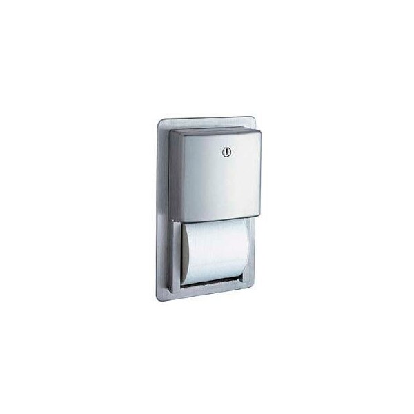 Bobrick conturaseries recessed multi-rolls tissue dispenser the conturaseries recessed multi-roll tissue dispenser is stylish and ideal for use in medium to high volume restrooms in offices, health care facilities, hospitals, recreation centers, and more. Constructed of durable, corrosion resistant stainless steel, with heavy-duty, theft-resistant spindles. Holds two rolls up to 5-1/4 diameter 1800 sheets. Extra roll automatically drops in place when bottom roll is depleted. Recessed design makes this dispenser ideal for smaller areas. Features flush tumbler lock. Dimensions: 6-1/4w x 2-3/4d x 11-1/4h.