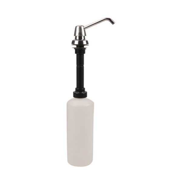 LIQUID SOAP DISPENSER BY BOBRICK® 4" SPOUT;AMERICANS WITH DISABILITIES ACT (ADA) ITEM: YES;CAPACITY: 34 FL OZ, 1005 ML;INCLUDES: KEY;LENGTH: 4", 102 MM;MATERIAL(S): PLASTIC BOTTLE, STAINLESS STEEL SPOUT;TYPE: FITS 1"OD HOLE IN DECKS UP TO 4" THICK;ROTATES 360°;SOAP & SANITIZER;VANDAL RESISTANT, CORROSION RESISTANT VALVE;WEIGHT: 0.88 LB