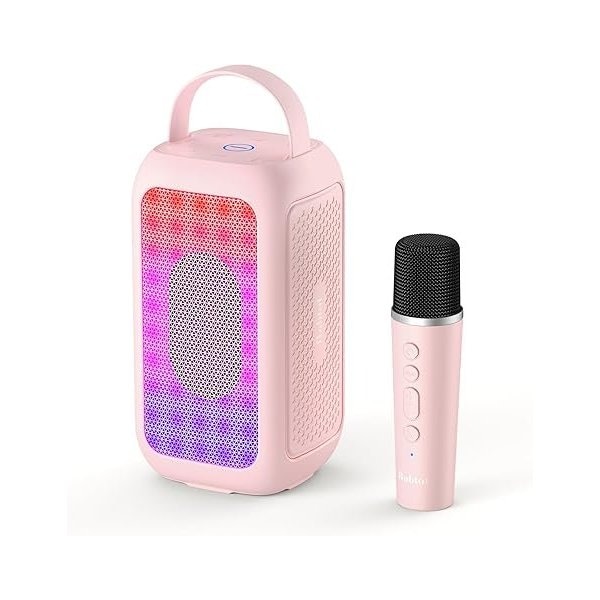 Portable Bluetooth Speaker, Pink, Karaoke Machine w/Mic, Echo, EQ Mode, Deep Bass, RGB, Supports
