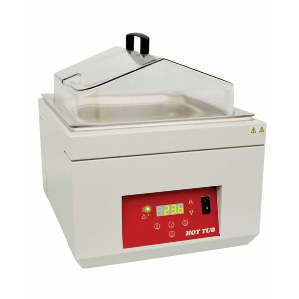 Hot Tubs Water Baths offer a variety of sizes to meet all of your needs and are ideal for general lab applications. The space saving design allows for the most efficient use of bench space and the PID Controller offers easy temperature selection, rapid heat-up and excellent stability. Baths can also be used as a boiling water bath. User simply sets temperature to €œboiling mode€ and attaches gabled cover. Large easy to read LED panel displays temperature settings in 0.1°C increments and programmable timer up to 99hrs, 59mins. Temperatures from +5°C above ambient up to 100°C can be maintained with ±0.1°C accuracy. Recessed panel protects controls from spills. Seamless steel tank includes diffuser tray and shelf. Built for years of reliable performance and include a. Excellent performance Boiling mode is ideal for melting agar