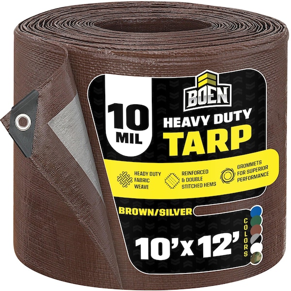 Heavy Duty Tarp, 10 ft x 12 ft, 10 Mil, Brown, Polyethylene