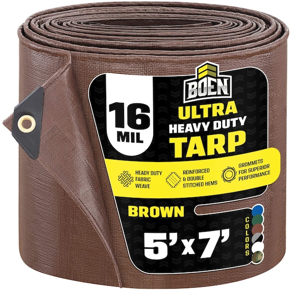Ultra Heavy Duty Tarp, 5 ft x 7 ft, 16 Mil, Brown, Polyethylene