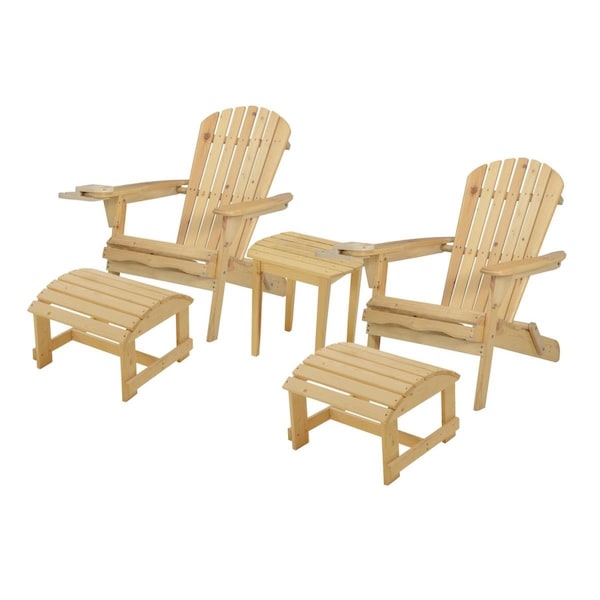 35 x 32 x 28 in. 2 Foldable Chair with Ottoman & 1 End Table, Natural
