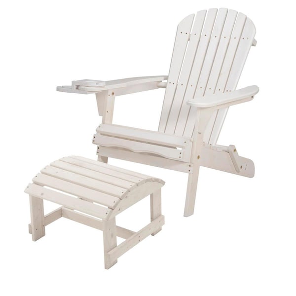 35 x 32 x 28 in. Foldable Chair with Cup Holder & Ottoman, White