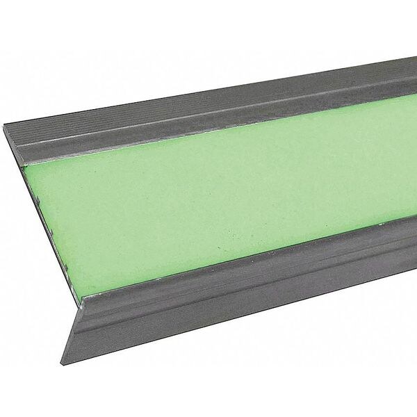 Stair Tread Cover, Lip Height 1-1/4 In., Color Photoluminescent, Includes Tapcon Screws, Installation Method Fasteners, Material Aluminum, Standards ASTM, ADA, Thickness 9/32 In.