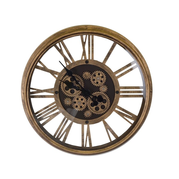 17.5 in. Antique Gold Wall Clock With Moving Gears