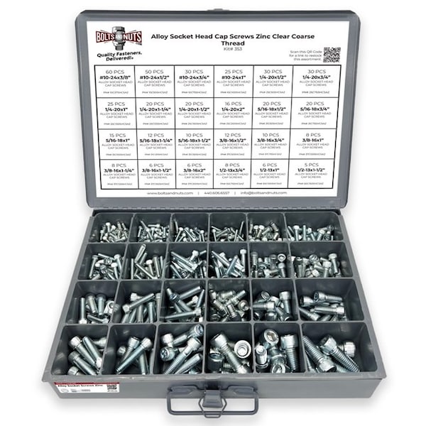 - • 453 Pieces - High Quality Alloy Socket Head Cap Screws Zinc Clear Assortment