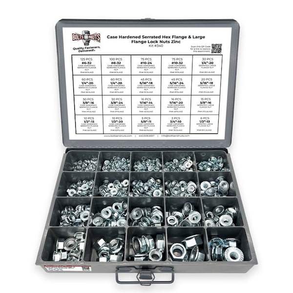 - • Case Hardened Serrated Hex Flange & Large Flange Lock Nuts Zinc Assortment - 777 Pieces