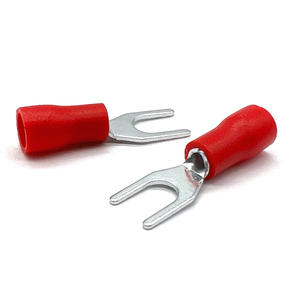 Fork Terminal, 16 AWG, 600 V, PVC, Vinyl Insulated, Red, 100 PK