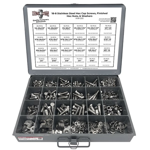 GR5, GR8, 18-8 Stainless Steel, A2-70 Stainless Steel, and CL10.9 Hex Cap Screw Assortment Kits
