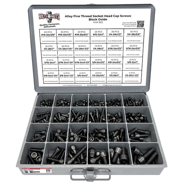 Inch Alloy Allen Fine Thread Socket Head Cap Screws Bolts Black Oxide Assortment - 453 PCS