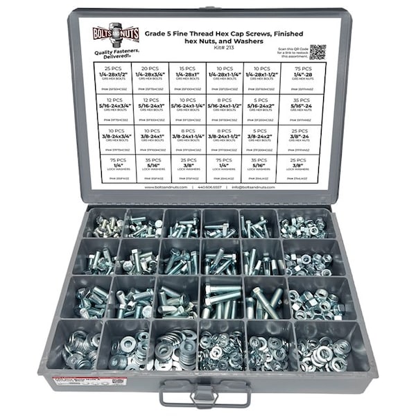 Inch Grade 5 FINE Hex Cap Screws, Hex Nuts, Flat & Lock Washers - 574PCS