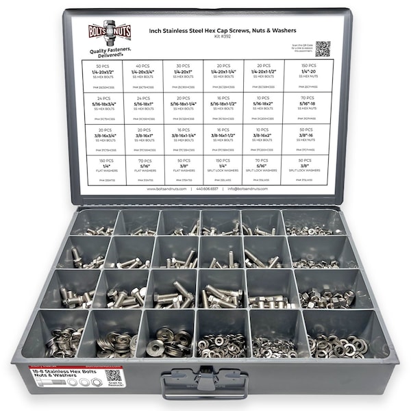 - • 1147 Pieces - High Quality 18-8 (304) Stainless Steel Hex Cap Screws Bolts & Nuts & Washers