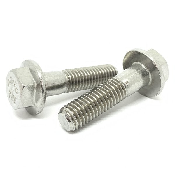 Class A2-70 stainless steel flange bolts are made of an austenitic stainless steel grade that is acid proof and offers a minimum tensile strength of 700 N/mm2. They have a hexagonally shaped head and a circular edge under the head that acts like a washer to distribute loads.