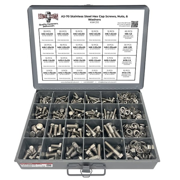 GR5, GR8, 18-8 Stainless Steel, A2-70 Stainless Steel, and CL10.9 Hex Cap Screw Assortment Kits